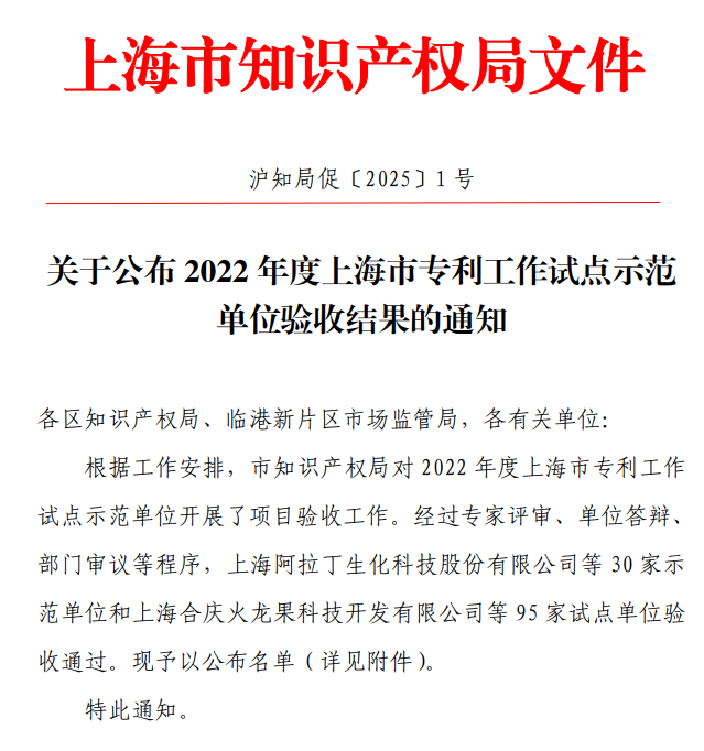 “上海市专利试点单位”是上海市对企业知识产权创造、运用、保护、管理等方面工作突出授予的重要荣誉,是上海市给予企业知识产权管理工作的重要评价。此次验收并获评优秀,充分展示了公司在专利保护、管理、运用等方面的综合实力。