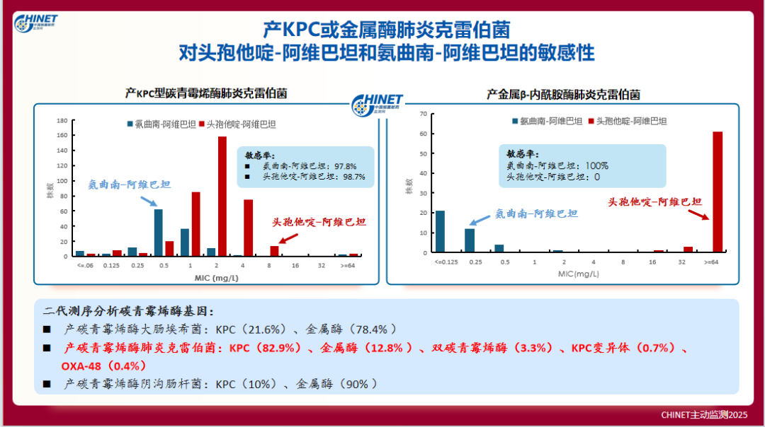图2:产KPC或金属酶肺炎克雷伯菌对头孢他啶-阿维巴坦和氨曲南-阿维巴坦的敏感性比较