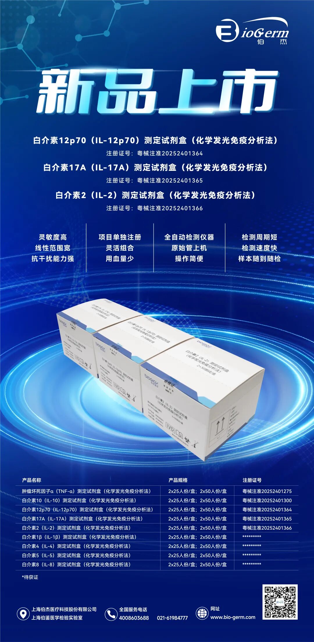 上海伯杰推出的13项细胞因子检测试剂,采用化学发光法检测技术,灵敏度高、特异性强,且操作简便,可满足临床对细胞因子指标的检测需求,为细菌、病毒、肺炎支原体等呼吸道感染患者提供“病因鉴别、病情评估、治疗指导、预后监测”客观、可量化的依据,为临床医生的精准诊断和用药提供助力。