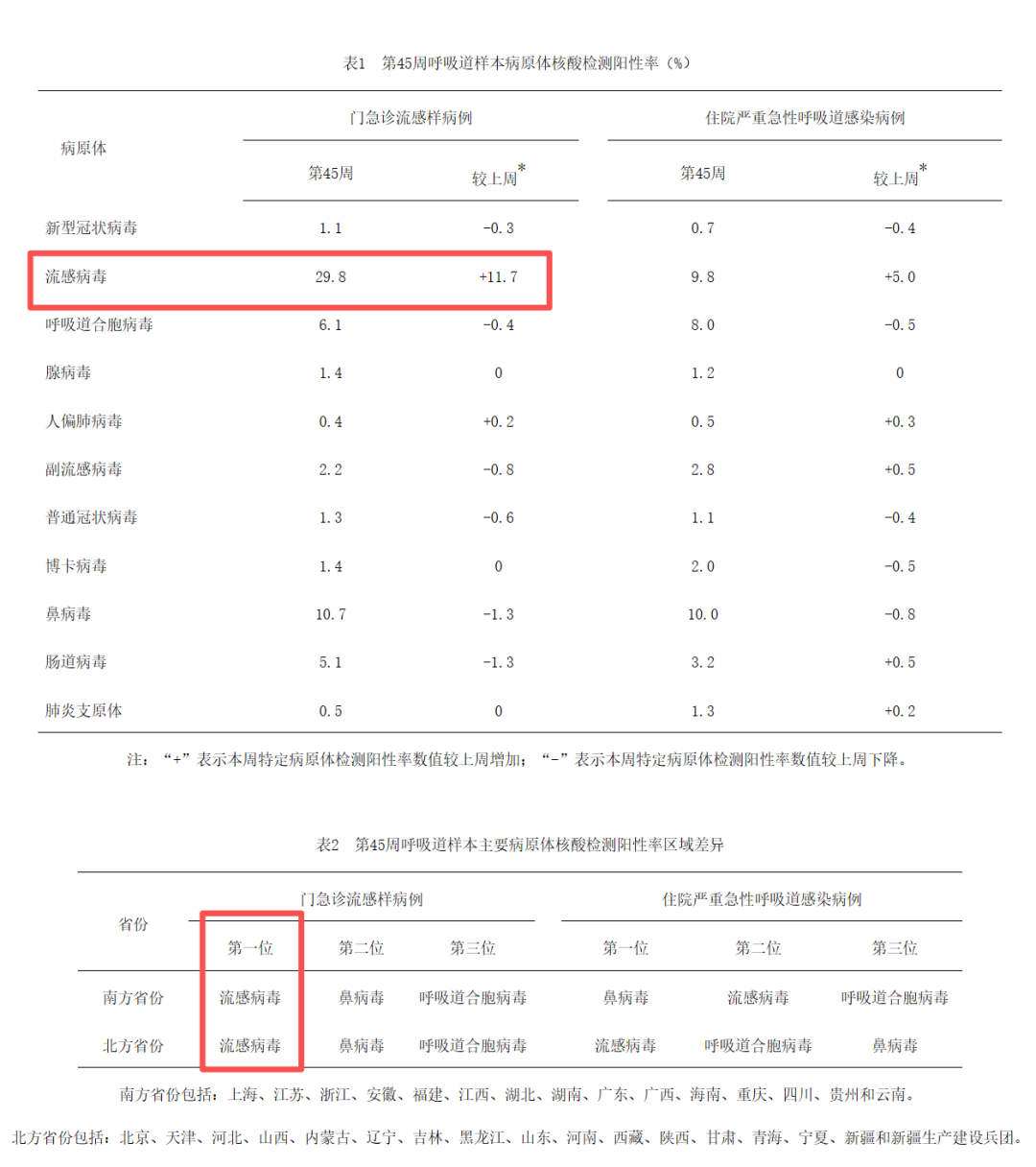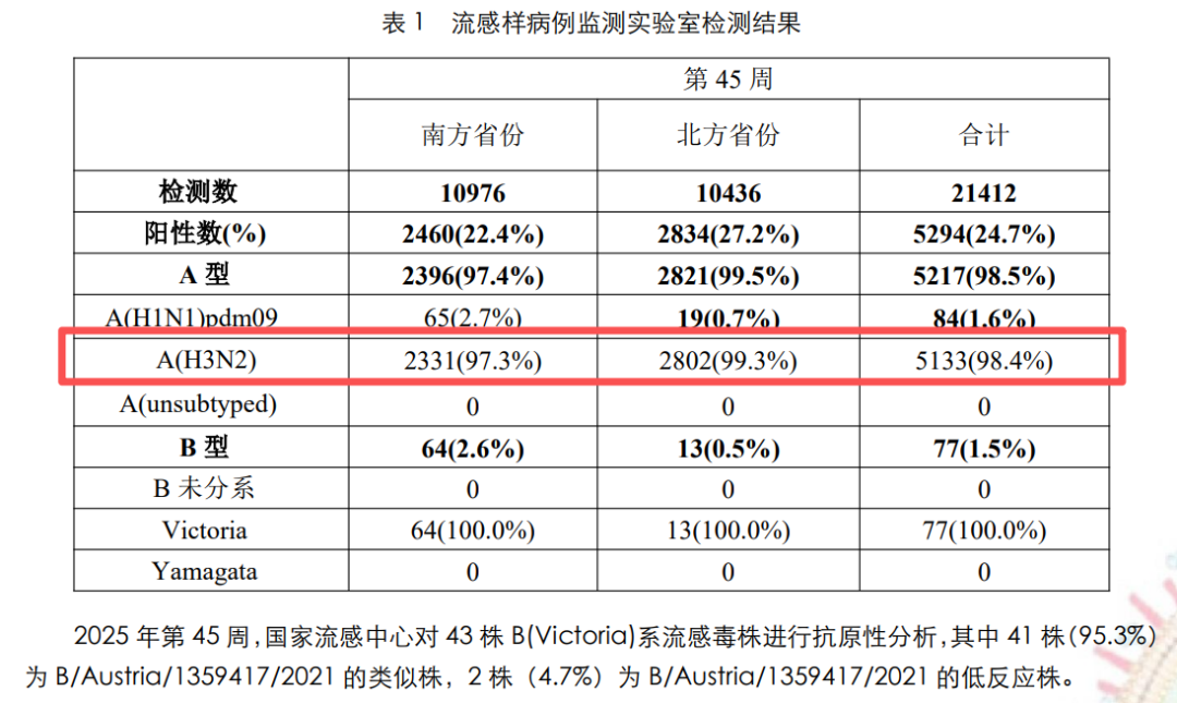 图片来源于中国疾控中心2025年第45周流感检测周报