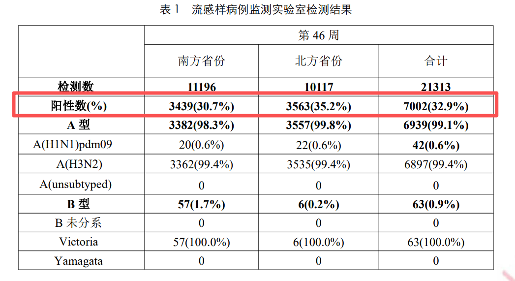 南方省份流感样病例的流感病毒阳性率从上上周的22.4%上升到了上周的30.7%。北方省份的流感样病例的流感病毒阳性率也从上上周的27.2%上升到35.2%,南北方省份均超过30%了。