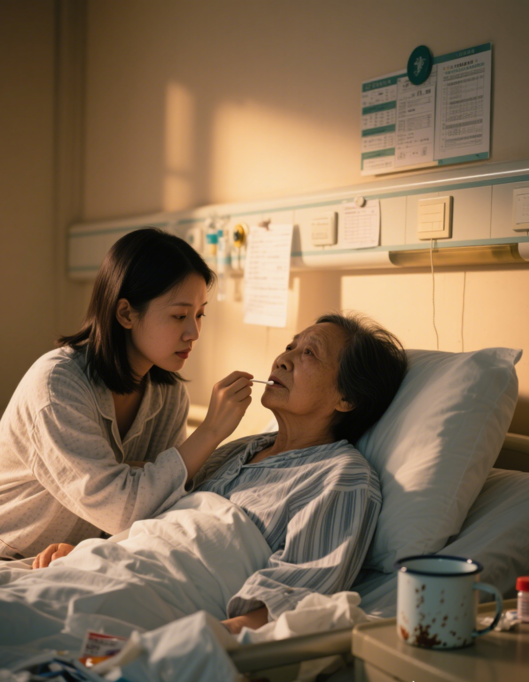 棉签蘸着温水,轻轻擦去妈妈嘴角残留的药末。手上搪瓷药杯早已斑驳,就像她此刻浑浊的眼神 —— 明明望着我,却像隔了层厚雾,认不出眼前人。
