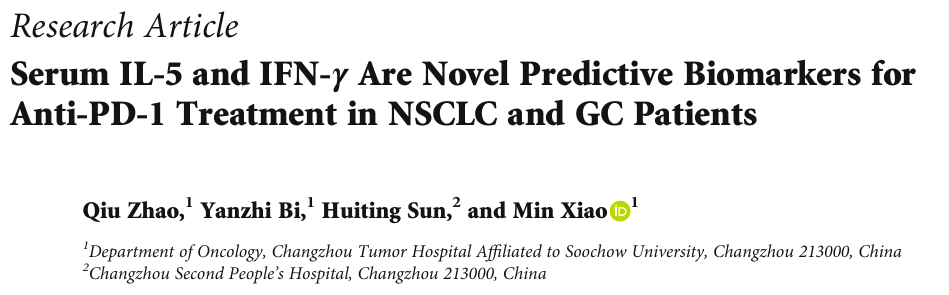 3. Zhao, Q., Bi, Y., Sun, H., & Xiao, M. (2025). Serum IL-5 and IFN-γ are novel predictive biomarkers for anti-PD-1 treatment in NSCLC and GC patients. Cancers, 17(17), 4672.