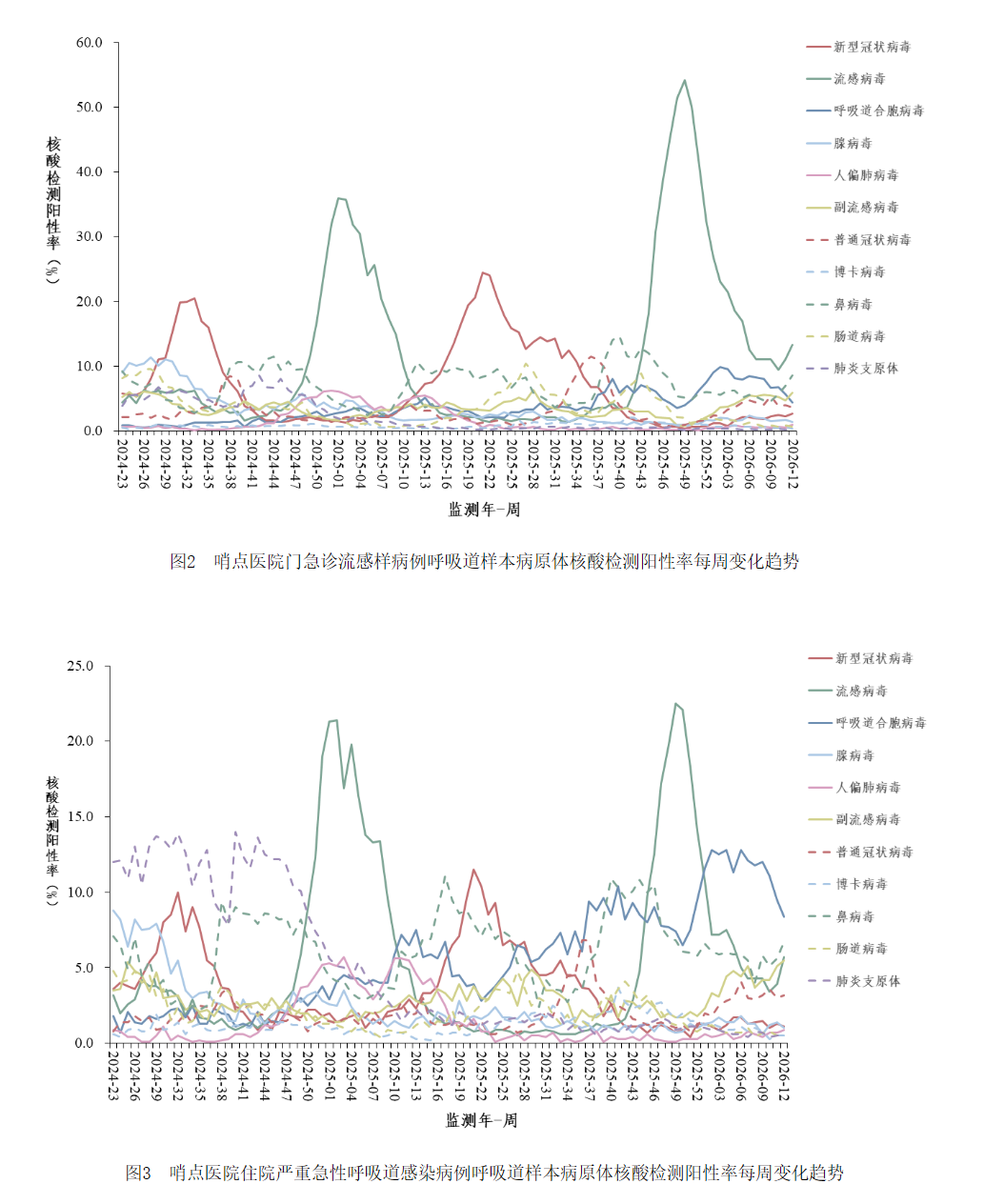 门急诊流感样病例中,流感病毒(13.3%)、鼻病毒(8.6%)、副流感病毒(5.9%) 位列前三;而在住院严重病例中,呼吸道合胞病毒(8.4%)、鼻病毒(6.7%)、流感病毒(5.7%)的威胁不容小觑。应对多种呼吸道病原体“组合式”流行的趋势,是当下呼吸道感染防控的重要挑战。