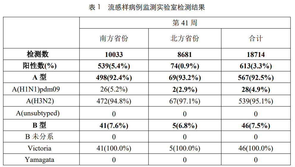图片来源于中国疾控中心2025年第41周流感检测周报