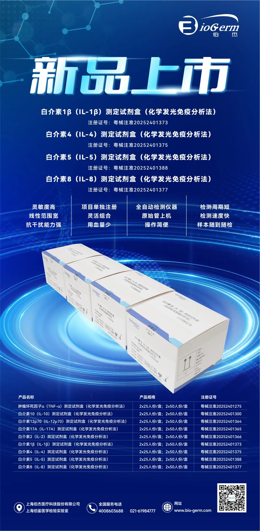 上海伯杰推出的13项细胞因子检测试剂,采用化学发光法检测技术,灵敏度高、特异性强,且操作简便,可满足临床对细胞因子指标的检测需求,为细菌、病毒、肺炎支原体等呼吸道感染患者提供“病因鉴别、病情评估、治疗指导、预后监测”客观、可量化的依据,为临床医生的精准诊断和用药提供助力。