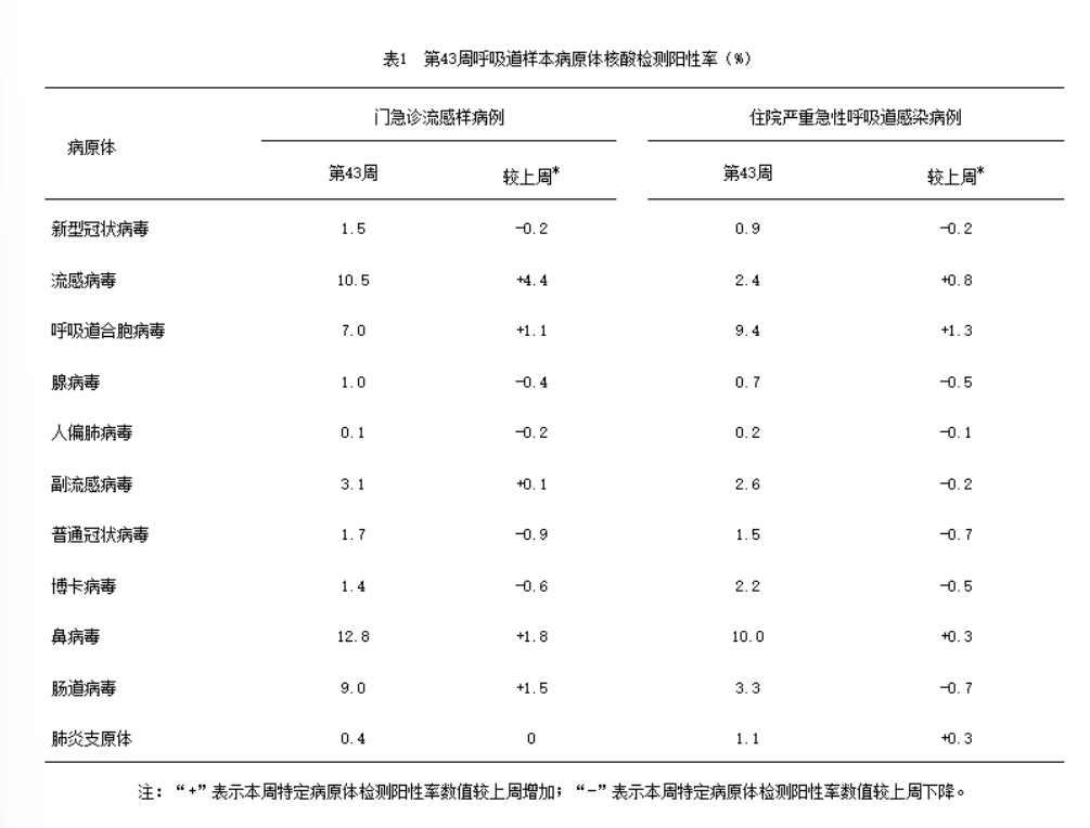 图片来源于中国疾控中心2025年第43周流感检测周报