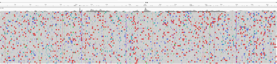 对腺病毒样本,使用二代测序平台,PE150读长,测300Mb数据量,分析样本基因组覆盖度≥99.87%,覆盖度结果如下: